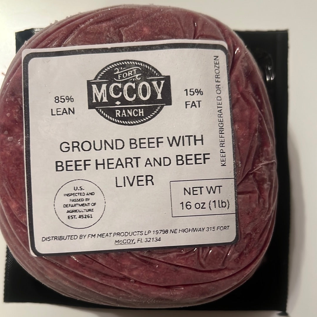 Discover the rich, nutrient-dense blend of our 85/15 ground, liver, and heart mix, offering a unique and flavorful combination perfect for creating wholesome and delicious meals. Perfect for making dog food.